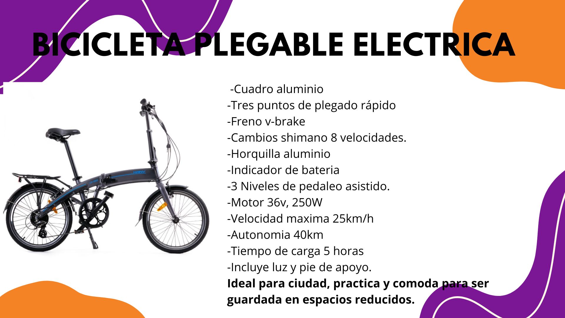 Bicicleta plegable electrica rodado 20